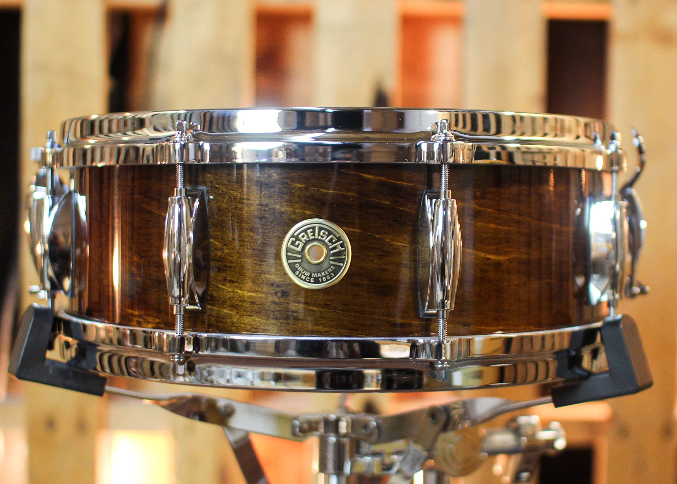 At the heart of each drum is the legendary 6-ply Gretsch-formula maple/gum shell with its 30-degree bearing edge, the exclusive "Silver Sealer” interior finish and rugged 4mm die cast hoops. The custom drum building team in Ridgeland, South Carolina uses time-tested, classic finishing techniques such as hand-rubbed stains and nitro-cellulose lacquers. Gretsch’s nitron-finishes are some of the world’s finest, offering additional durability and a vintage look requested by many top drummers. Gretsch takes pride in knowing that USA Custom owners can sit down every day and literally play the kit of their dreams.